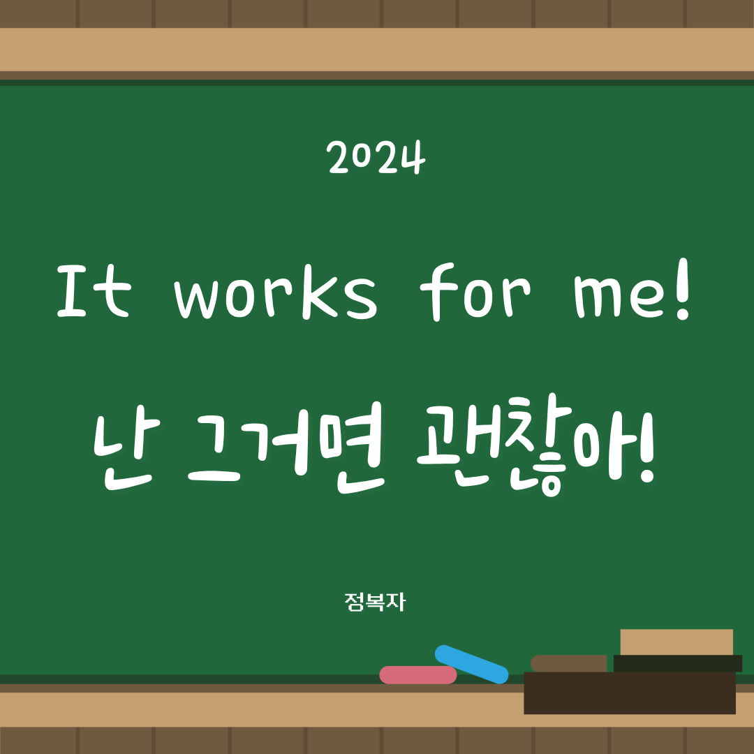 "It works for me!"는 어떤 방법이나 도구가 나에게 잘 맞거나, 또한 상대방의 제안이나 방법에 대해 "괜찮아요" 라는 의미로 자주 사용됩니다.